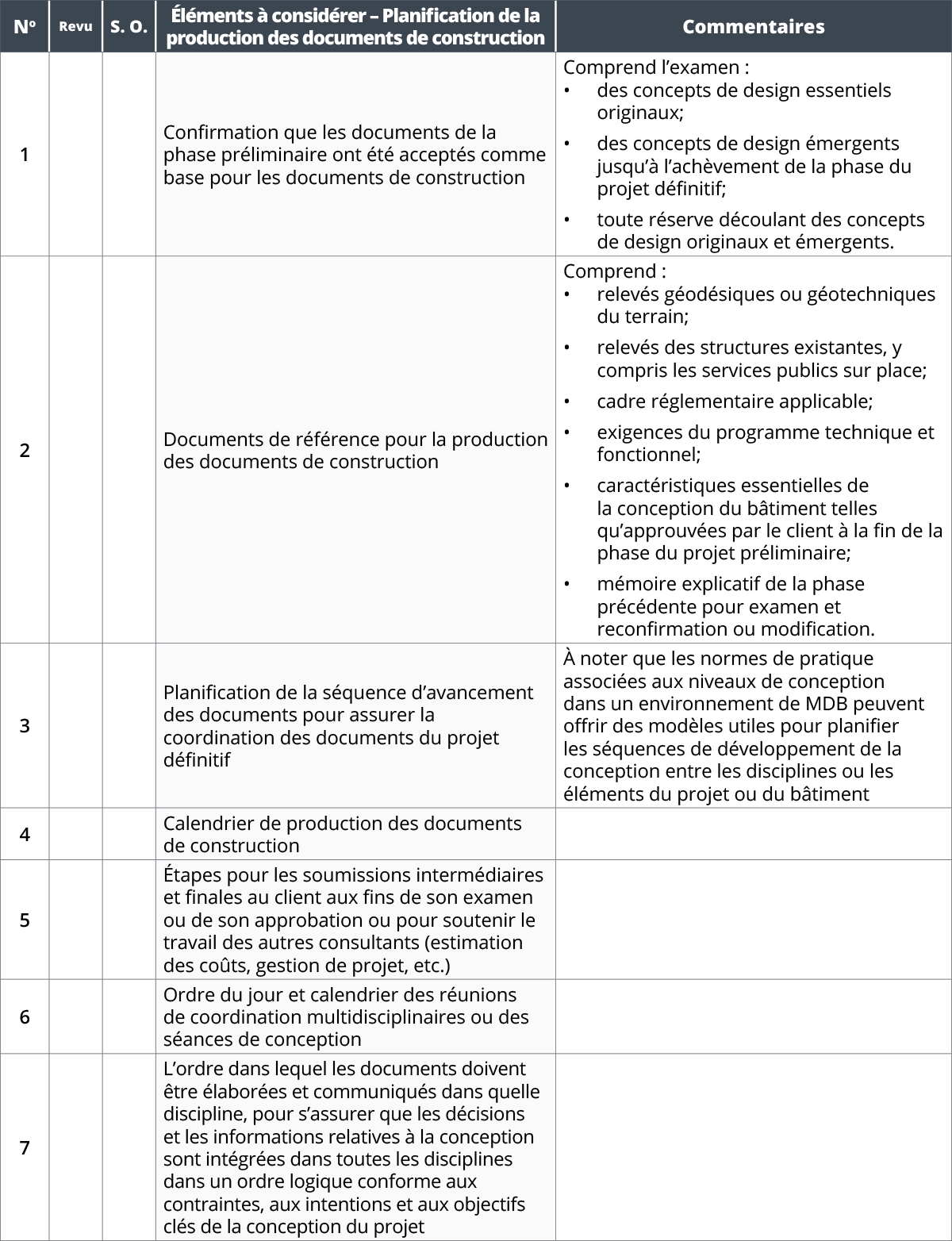 Ordre du jour proposé pour une réunion de l’équipe de conception avant d’entamer la phase du projet définitif