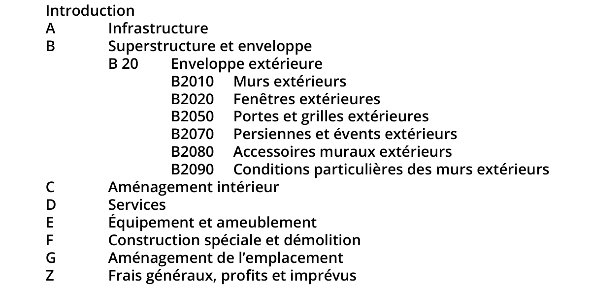 Coûts élémentaux à l’aide d’Uniformat II