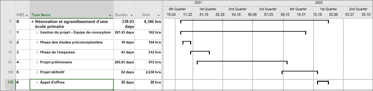 Ce type de renseignements peut servir à l’élaboration de la structure de répartition du travail (SRT) principale.