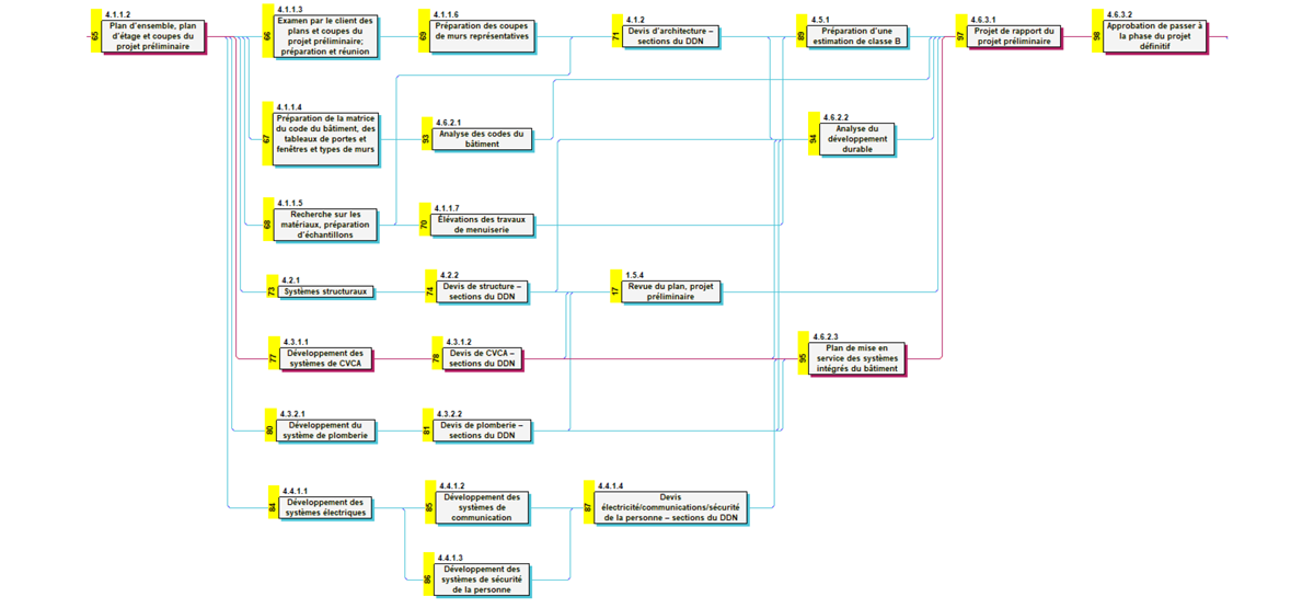 FIGURE 5 Détail du diagramme de réseau du projet – Phase du projet préliminaire